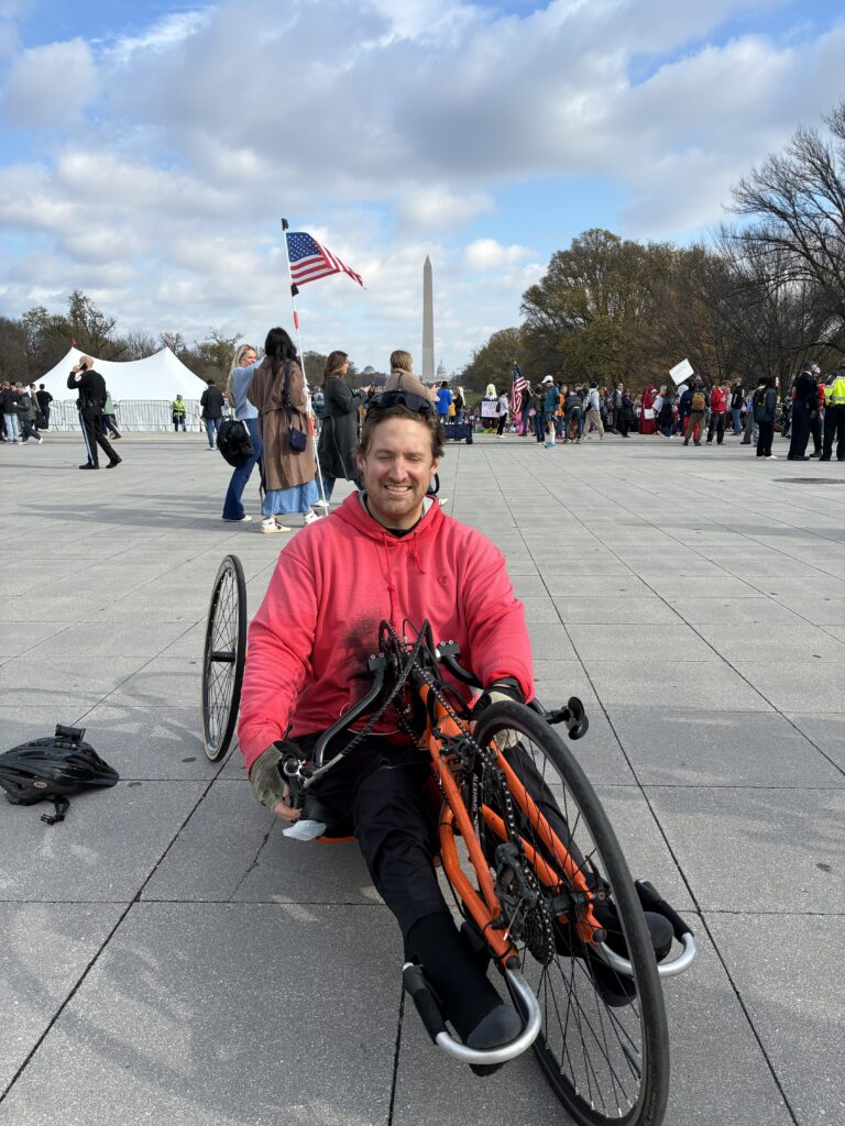 Early one morning, Carol went for a bike ride with her friend. They were cycling along a stretch of highway when she was sucked under the draft of a transport truck. She suffered major trauma, which resulted in her right leg being amputated below the knee and a traumatic brain injury. She was in a coma for two weeks and in rehab for six months.