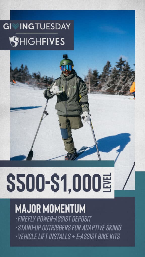 Giving Tuesday is happening on December 2, and for the High Fives Foundation, it’s one of the most powerful days of the year. It’s when our community comes together to fuel life-changing equipment, recovery resources, and opportunities for athletes rebuilding their lives after a life-changing injury.