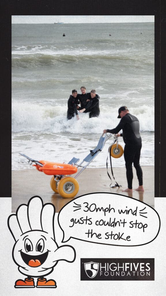 On October 20, four High Fives athletes took on Manasquan Inlet, New Jersey for a surf session powered by resilience. With 30 mph wind gusts and cold Atlantic conditions rolling in, this day demanded tenacity and our athletes showed up ready to ride.