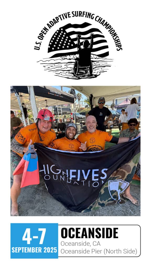 The waves of Oceanside came alive as athletes from around the world gathered for the 8th Annual U.S. Open Adaptive Surfing Championships. High Fives Foundation was proud to support and cheer on the incredible athletes who showcased resilience, talent, and pure joy in the water.